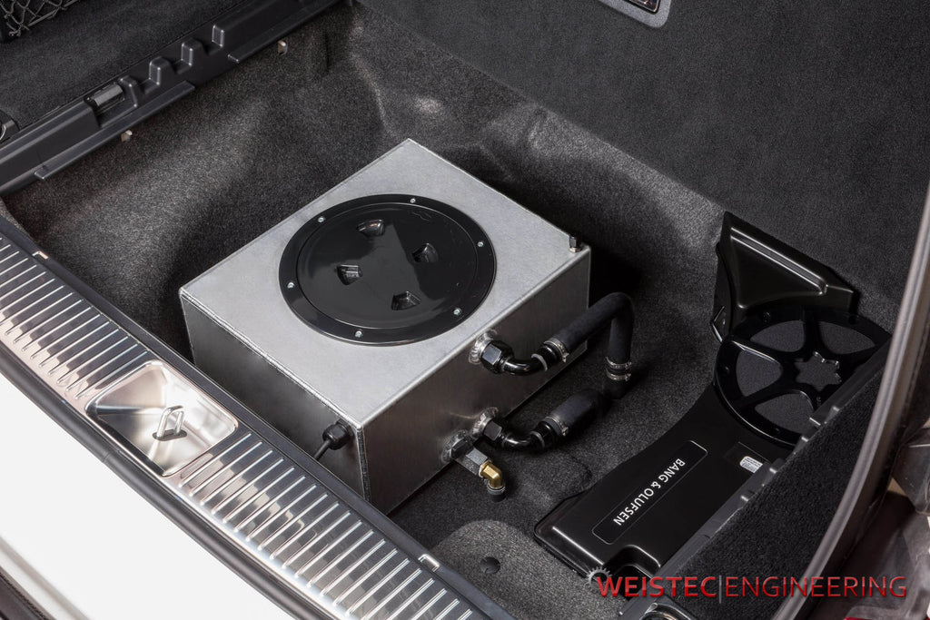 Weistec Engineering is proud to introduce the trunk mounted water tank upgrade for all M156 Supercharged, and M113 Supercharged vehicles. The use of this water tank upgrade will allow extended heat dissipation in all climates, and will also allow the user to apply ice to the intercooler system if needed to further chill the air charge temperature as it enters the intake path. The tank also contains a large capacity ball valve drain system, that will allow the user to quickly drain hot water from the system and add ice between runs.